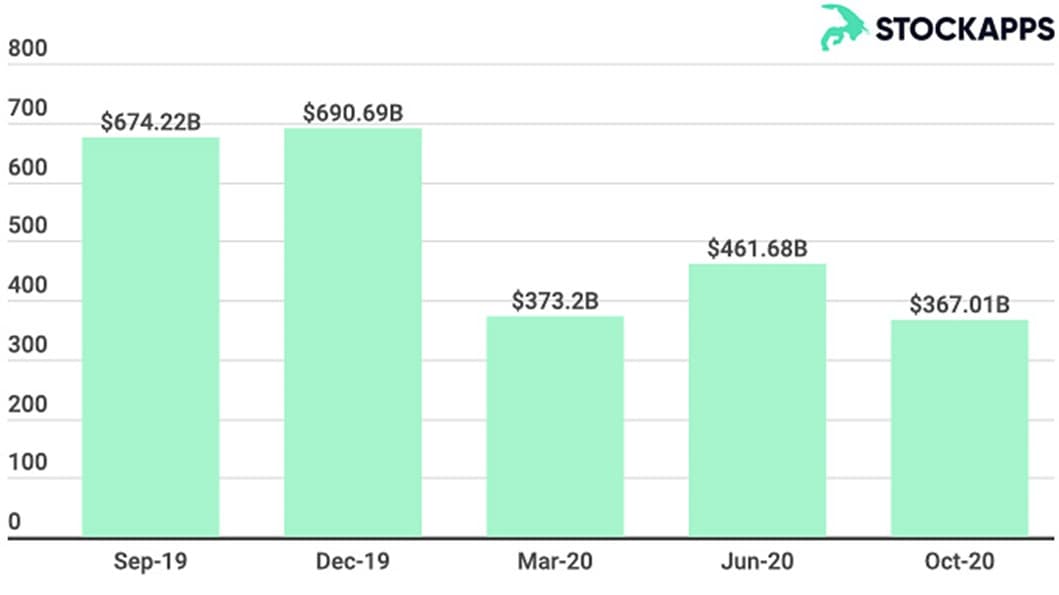 During COVID, international oil companies have seen a steep decline in their revenues, market value, and interest from institutional investors. The ongoing financial plunge has had an enormous effect on their total market capitalization, which plunged to unforeseen levels. In October 2020 reports showed that the combined market cap of the top-5 oil companies in the U.S. fell by 45% to $367 billion, in comparison to $690 billion in December 2019 or $674 billion in October 2019. It wasn’t only COVID that was responsible for this drop, but also global macro-economic drivers, such as the U.S.-China trade war and continuing oil overproduction. In the last year, instability in the market has increased due to lower revenues, increased market cooperation, and a tsunami of bankruptcies, divestments, and consolidation. A significant indicator of just how much the industry was suffering was the removal of ExxonMobil, once the world’s largest publicly traded company, from the Dow Jones Industrial Average in August 2020. Exxon suffered a huge market cap drop in 2020, falling from $300 billion in September 2019 to $144 billion in October 2020.