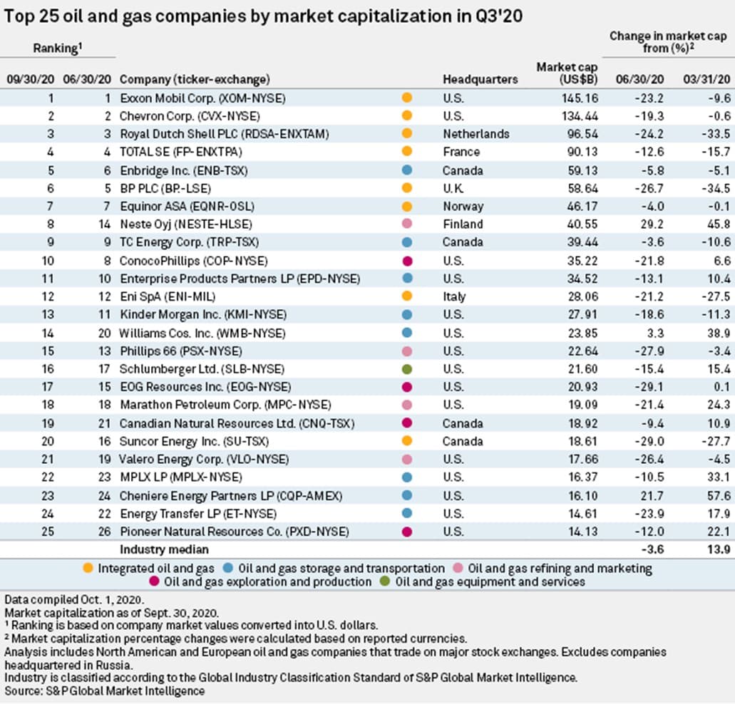 European oil and gas companies also suffered in 2020. Almost all 25 NA-European oil and gas companies have seen a market capitalization crash in 2020.