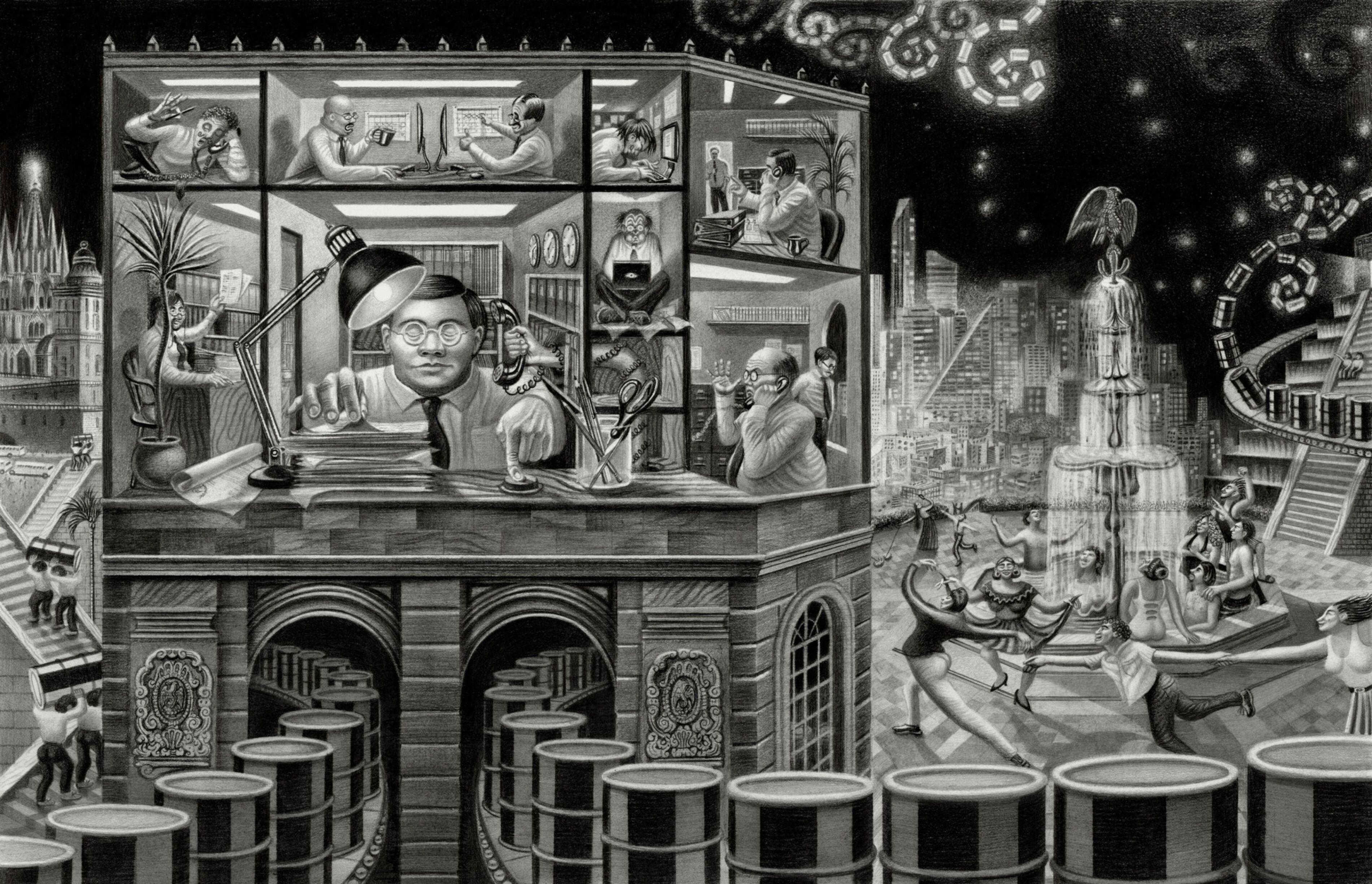 Yet on July 22, 2008, just 11 days after oil reached its all-time high, this small group of Mexicans gathered to discuss their very different outlook in the ornate surroundings of Mexico’s finance ministry, the Secretaría de Hacienda y Crédito Público. The palace—located on the Zócalo, the capital’s vast main square—had been built centuries earlier atop what once was the home of conquistador Hernán Cortés. On the walls around the main entrance, gigantic Diego Rivera murals depict the country’s history.