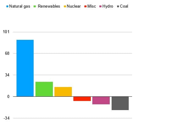 “Temperature departures from the heating and cooling norm make a big difference for residential KWH sales. Thus, it looks as if the recent sales surge is weather induced. Consumer attitudes towards electricity usage were not likely altered. But electric utility customers did respond to temperature extremes in their respective locales in the way we would expect. How did the electric industry produce that extra electricity sold in the first six months of 2018? Here is how the production by fuel changed: the industry burned more natural gas, used more renewables and burned less coal. That is not an auspicious omen for the Trump administration’s plans to revive coal. It seems that the electricity industry is acclimating itself to a low or no coal future, despite the stated intentions of the Trump administration (See figure that follows.) The six months results probably do not portend an upturn in electricity sales due to a change in consumer attitudes with respect to the efficient usage of electricity. But these strong sales results may say something about escalating future power generation requirements due in part to climate variation itself. Climate change is a topic the once coal dependent electric utility industry has preferred to ignore. But now the industry overall benefits economically with the more rapid demise of coal and increased reliance on natural gas. It seems like an ideal time for industry rebranding. It is not unreasonable to think the local electric utility could one day appeal to consumers as the carbon-free, home climate comfort provider operating on both sides of the meter. No one today, for good reason, thinks of electric utilities as a growth industry. And while climate extremes both hot and cold may propel near term kwh hour sales growth– the electrification of our transportation system –that’s the game changer.”