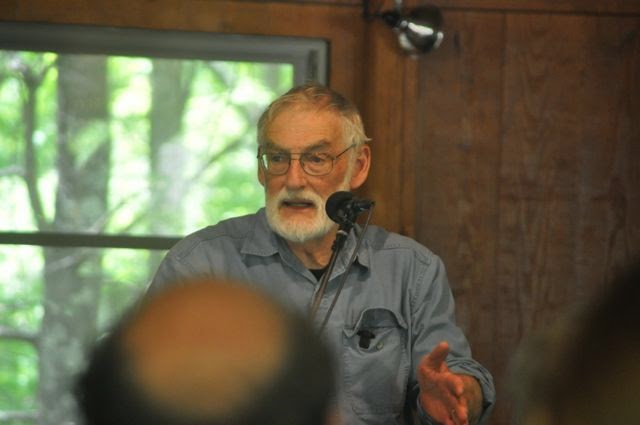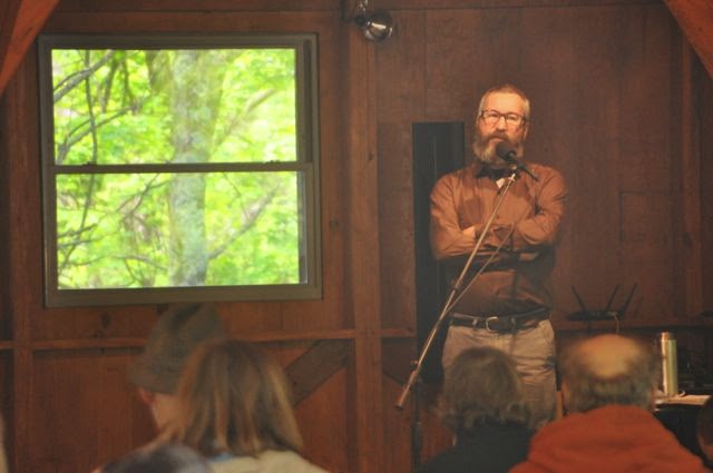 He wears torn bluejeans held by leather suspenders over a striped shirt recently stained with grease and spattered with sawdust from the machine shop where he spends his time on custom work when not roaming the land or sitting at a computer browsing RSS feeds of world news. Half-read books pile up on his desk, amidst stacks of scientific paper reprints, mail and notepads. Four Quarters Sanctuary is a retreat for native and non-native worshipers, a place of sweat lodges and Beltaine fire circles, home to a large annual music festival, and one other event of note — this annual Age of Limits conference.