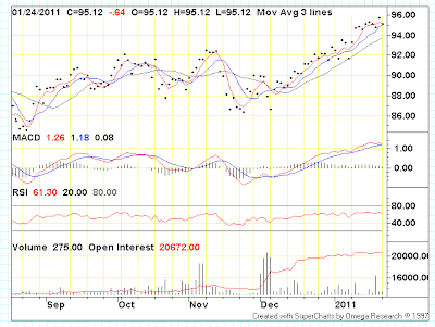 Price calls are very difficult to make, but I think you’d have to be betting on some kind of major economic calamity in some part of the world to think we’d only be paying $95/barrel for oil in 2015.  In particular, US consumption seems to have grown about 2.1% in the first three quarters of 2010 (over 2009) at $80ish oil, and despite an anaemic recovery.  Since I don’t see how US consumption can grow over the next decade on average, it seems like prices will have to go higher to prevent that.