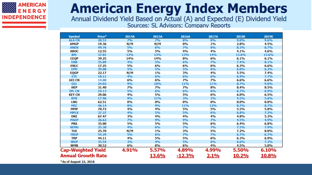 The components of the American Energy Independence Index are growing dividends at 10% per annum.