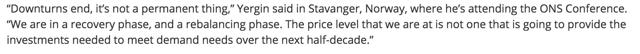 Given the level of magnitude in this downturn and what technological advances have been achieved since the 07-08 period, it’s safe to say that Yergin has been right on his prediction. As part of IHS, Yergin is widely followed in the energy community and a highly regarded “expert”.