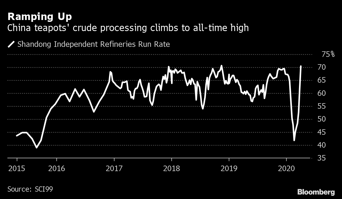 Oil refineries in China, the world’s biggest crude importer, may increase processing rates to near last year’s average levels this month, providing a glimmer of hope to a global market reeling from the virus. Meanwhile, processing at private refiners, known as teapots, will continue to ramp up with some idled plants set to resume in April, Chinese industry researcher SCI99 said. Wuhan, the epicenter of the coronavirus pandemic, officially re-opened on Wednesday after being locked down for almost four months.