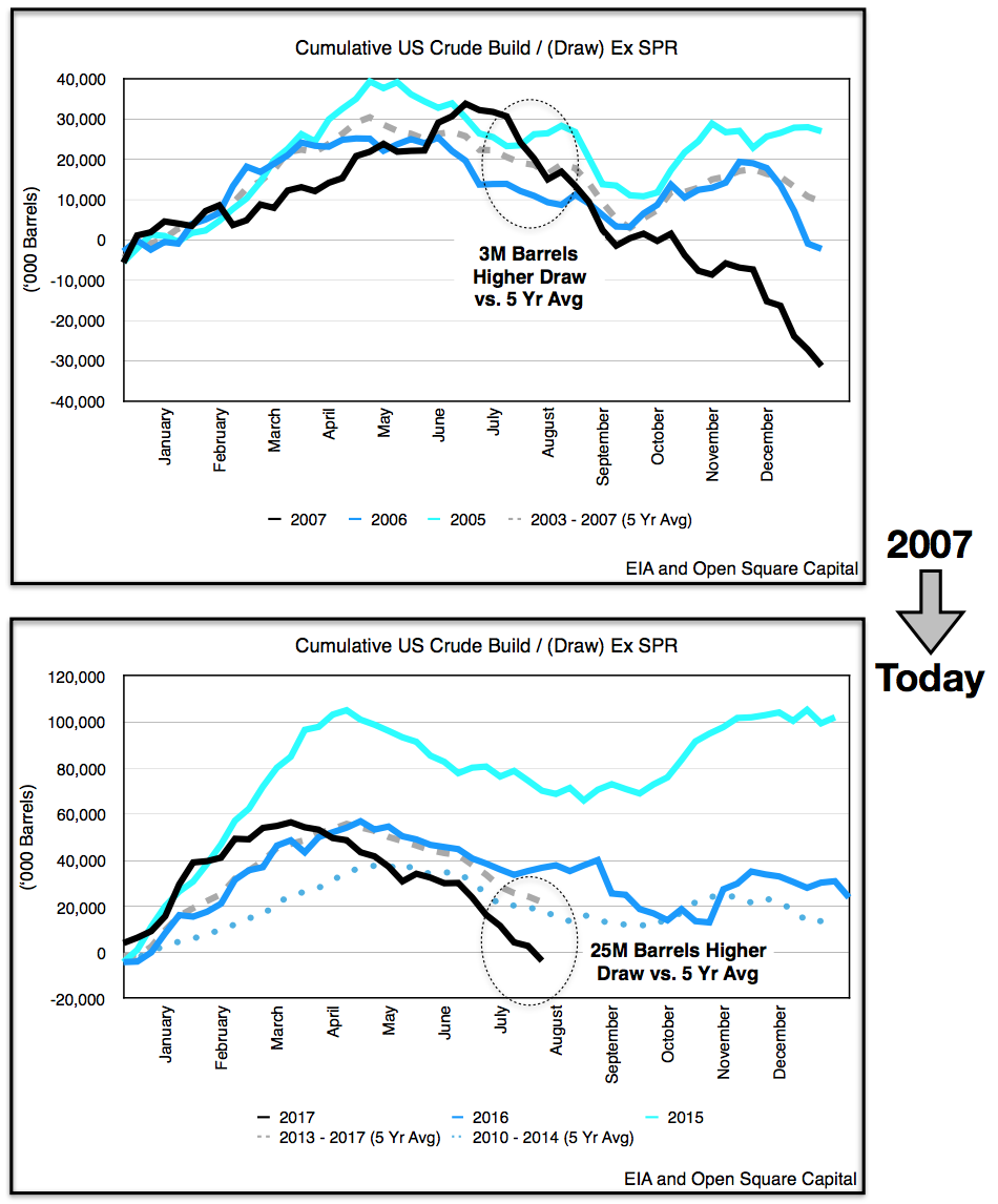 US total stock are drawing 3x higher today than 2007, and could accelerate as we head into H2 2017.