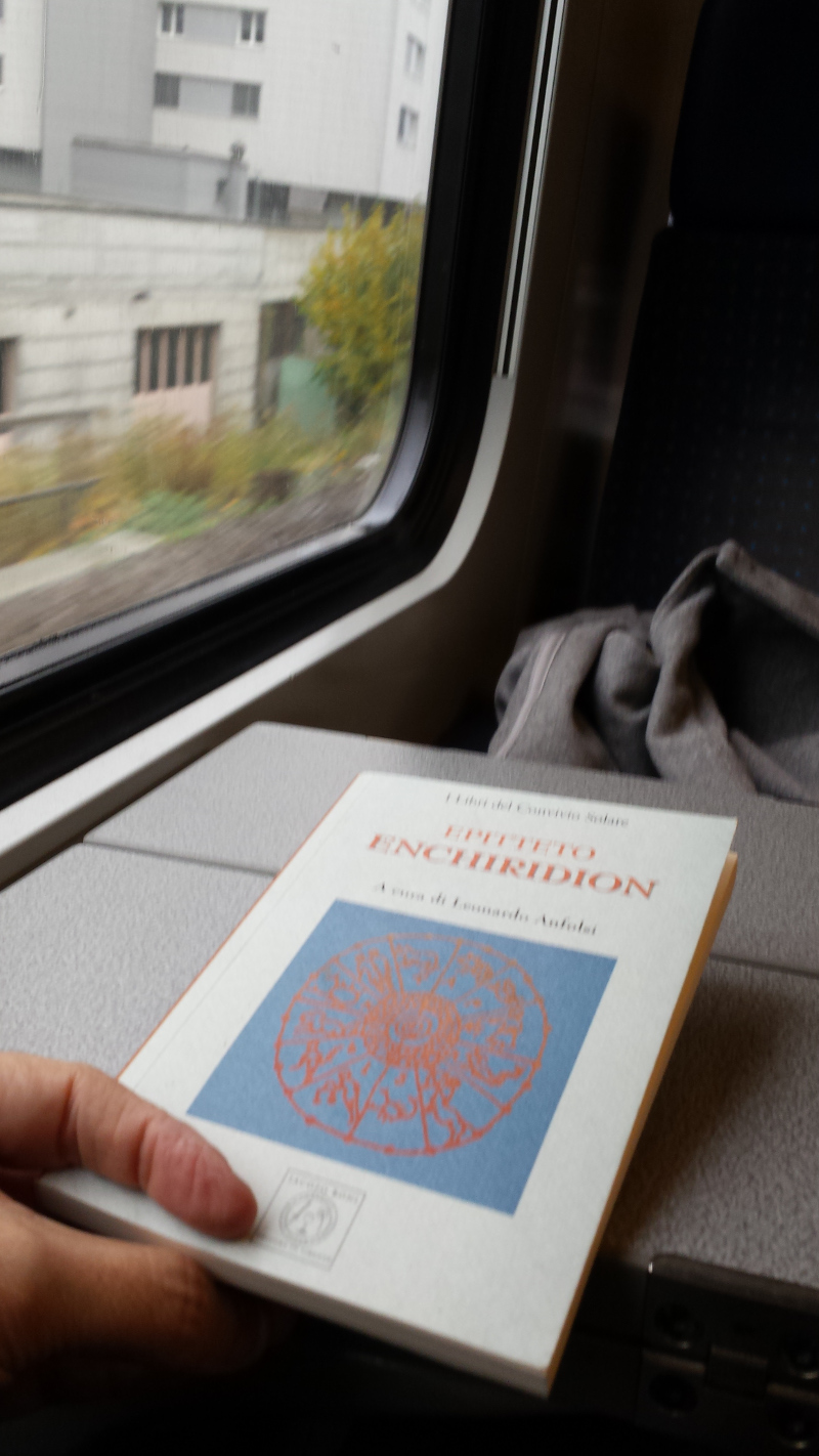 Still, there is a lot of work to do. For instance, in Switzerland, trains have no Wi-Fi (maybe because motion sickness is almost guaranteed if you travel in the Alpine region). Even in Germany, with all their hi-tech, the connection during my travel to Berlin worked only for the first half hour and then it died for the rest of the trip (and they wanted me to pay 6 euros for it!). In the picture, you can see that I was reading Epictetus on the train, a stoic philosopher who helped me surviving the lack of an Internet connection! But, surely, that can be improved: in Italy, for instance, the Wi-Fi connection in the high-speed trains comes for free and it normally works very well.