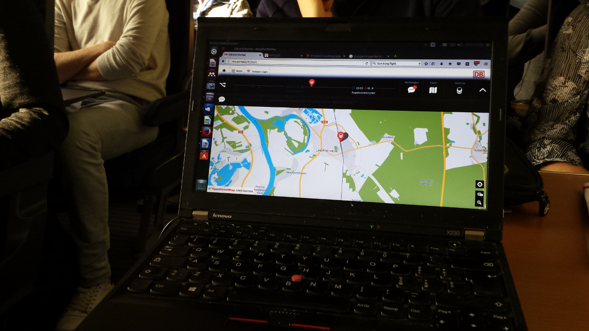 Then, many railroad networks have now an on-board Wi-Fi system. That’s a big plus because a long trip by train becomes actually a chance to do some work in holy peace – something that you can’t do on a plane, where you can’t even recharge your laptop. (Image: real-time travel information on a German intercity train: it worked beautifully, although only for half an hour).