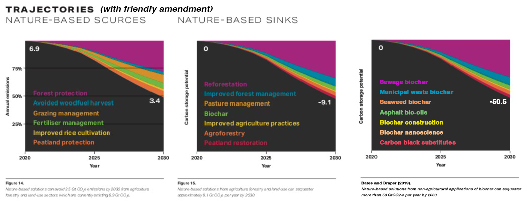 Getting past emissions reductions, the Exponential Roadmap looks at nature-based solutions for negative emissions and latches onto biochar, although unfortunately limited only to agriculture. We sent review copies of BURN: Using Fire to Cool the Earth to Rockstrom and Figueres but there is yet to be any sign they have read or understood the implications of extending the biochar solution beyond agriculture. The difference is between 2 billion tons of annual CO2 removal and 50 billion tons of annual CO2 removal, so hopefully, they will get around to reading that soon.