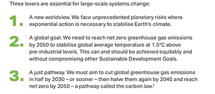 “The starting point in our narrative is we need to face the blind fact we are entering a climate crisis, we risk a hothouse earth future. We think it’s very important to face reality as a starting point.”
