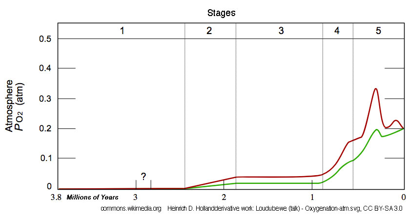Free oxygen did not exist in the atmosphere until about 2.4 billion years ago during the Great Oxygenation Event, when oceanic cyanobacteria learned to produce oxygen by photosynthesis, setting off the greatest mass extinction in history. Say goodbye to all the happy anaerobes. They either went underground or died.