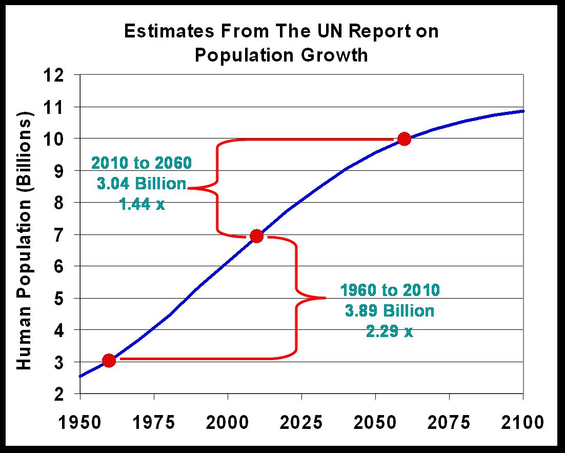 I’ve been looking at food production data available from the UN Food and Agriculture Organization (FAOSTAT). If we look at the half century since FAO started tracking it in 1960, global population increased by 3.89 billion. Between 2010 and 2060, global population is projected to rise by another 3.04 billion. Between 1960 and 2010, production of most crops did manage to keep up with population growth and for many crops there was actually more available per person in 2010 than in 1960. Living standards also improved in many parts of the world, which meant that people were able to enjoy that per capita increase. Fertility rates have declined with the education of women combined with improvements in living standards and food security. It is projected that global human population will level off by around 2100 due to these factors.
