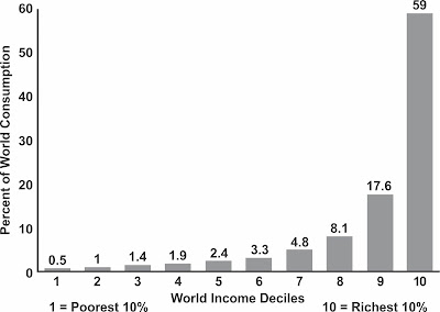 To the right is a little chart that contains some shocking information. The top 20% of the human population (in terms of affluence) is responsible for 76.6% of our impact. A financial crash will be very hard on those top 20% and in the process will drastically reduce human impact. Sadly, myself and most of my readers are in that top 20%.