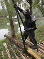 That museum, really a large and quite tranquil nature park in the middle of the city, was one of our best experiences in Nanjing. You enter through an ornate gate and pass through a large plaza with roller skaters and hot dog carts until you reach the edge of the canals, originally constructed by Zheng in the early 15th Century to get his ships from their cradle and crane assembly lines to the Yangtze River and thence down to the ocean.