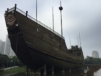 We used Trip Advisor to find Zheng He’s museum at the shipyard. We took an iPhone screen shot of the Chinese characters for its address and showed that to the taxi driver, who agreed to take us there for about $7. It was an hour ride across the city, made nearly twice that long by an official motorcade with helicopter escorts that forced us off the six-lane expressway and onto the crowded back-streets, but we got there eventually and the driver agreed to wait for us while we toured the museum.