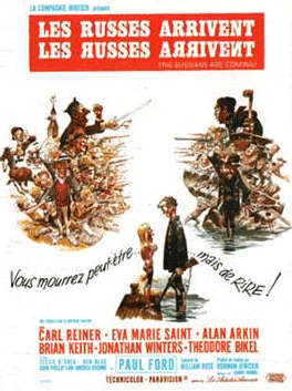 As the film ran, a Russian interpreter gave a simultaneous translation over the sound system. I had been told that if a Russian audience didn’t like something, they would make a “chuh-chuh-chuh” sound, so throughout the screening, I prayed I wouldn’t hear it. They laughed at the jokes in Russian that the Americans didn’t get, and everything was fine until Theo Bikel, the Russian sub captain, threatens to blow up the town. You could feel the tension in the theater, then the “chuh-chuhing” began. I thought, “Oh God, they thing they’re going to be made to look like the villians again.” But when the stand-off is broken by the little boy falling from the church belfry and the Russians help save him, the audience began a rhythmic clapping and many burst into tears. Directors Sergei Bondarchuk and Grigory Chukhrai were on their feet clapping and crying.