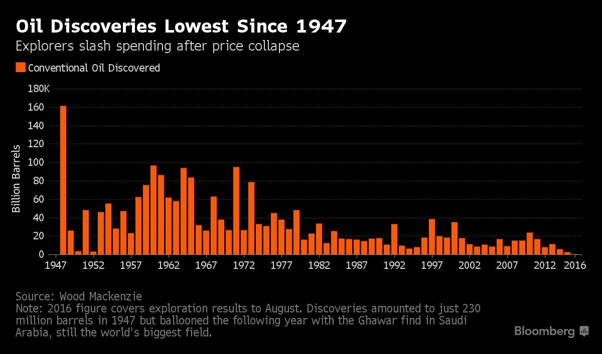 According to the Bloomberg story, this shortfall in discovery will be felt 10 years from now, when it begins to “hinder production.”