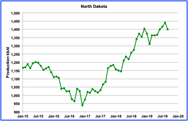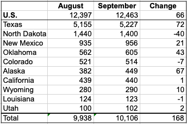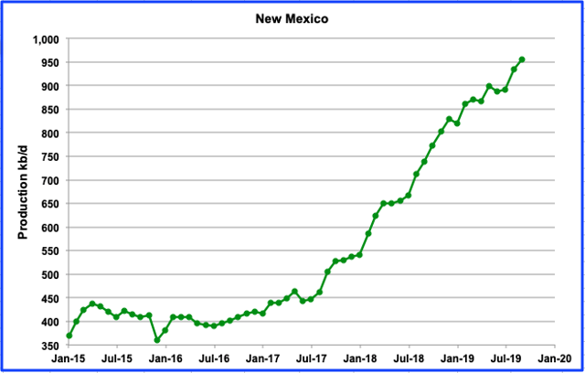 New Mexico’s September production increased by 21 kb/d to 956 kb/d. This is about half of the August increase and could be related to storm/weather activity.