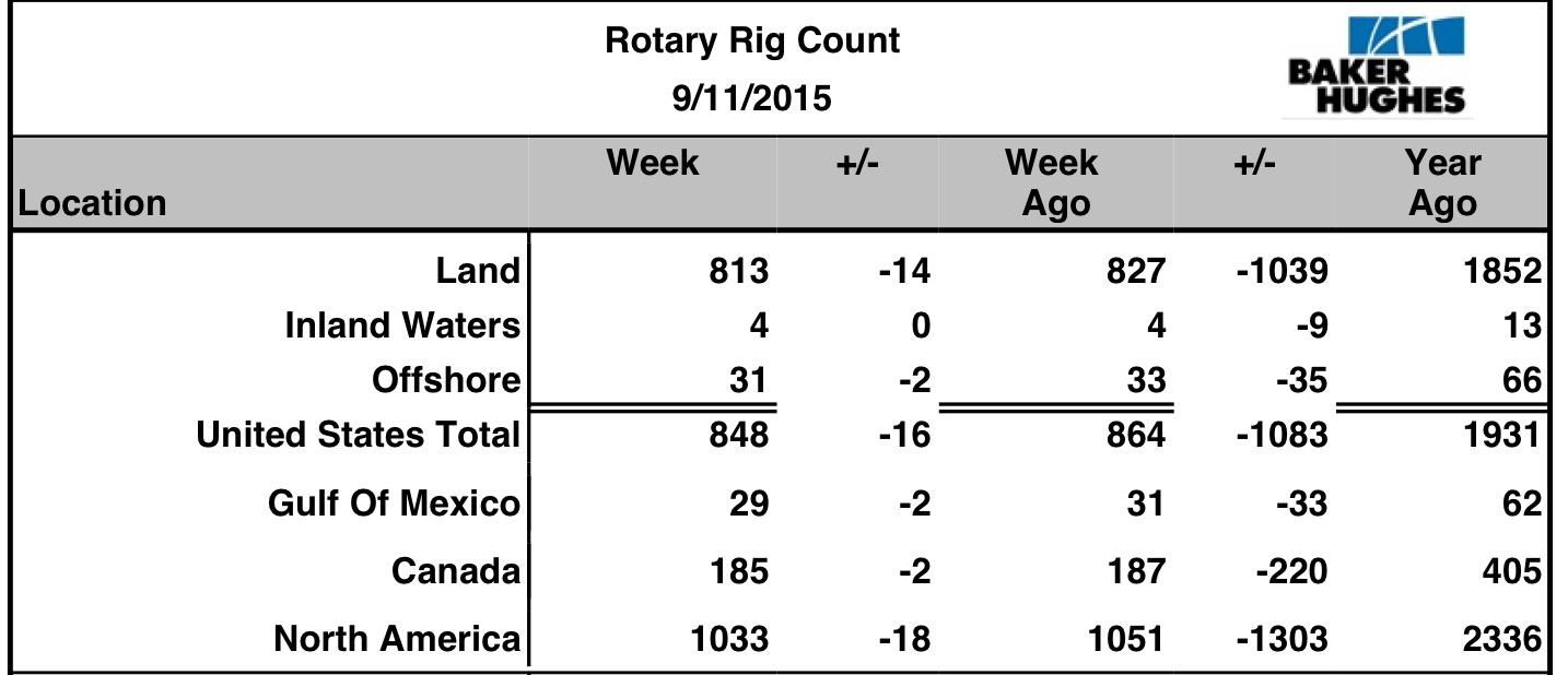 No reliable and consistently-available data could be found regarding the North Sea’s oil rig count, but what I did discover in my research is that investment in the region is expected to drop quite significantly. Despite the fact that oil production from the area is expected to be 65 thousand barrels per day higher this year than it was last year, the IEA thinks that production should start falling there next year and one source I found said that investment in the region should fall by more than half over the next three years given current prices because of the fact that the area represents one of the highest-cost producing regions on the planet.