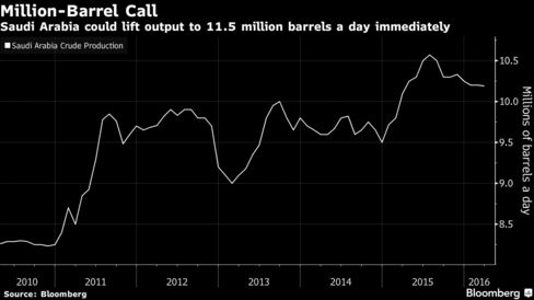 Saudi Arabia could raise crude production by more than a million barrels a day immediately, said the kingdom’s Deputy Crown Prince, as he reiterated the nation would only agree to freeze production if all major producers including Iran do the same.