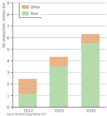Iraq has the same upcoming problem, if it is to increase production to the levels projected. This is not to question the size of the resource available, rather it is to inject a note of caution into assumptions that this oil will soon appear on the world market.