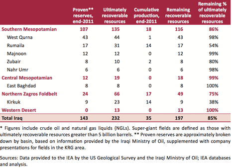 Figure 4. Iraqi oil resources by region and super-giant field (IEA )