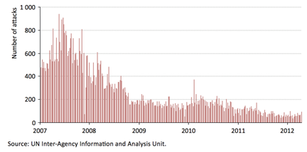 Here are some numbers and rates of change from 2008 to 2012 for Iraq’s production, consumption and net exports.