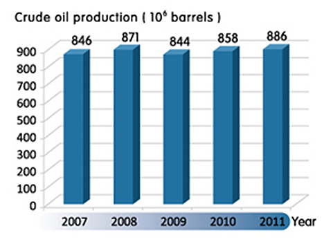 The Changqing Oil Field is also operated by CNPC. Discovered in 1971 it reached a total of 800 kbdoe in 2011 with a year-on-year growth in production of some 7 million barrels.