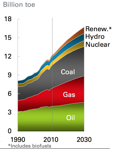 Within the period to 2030 BP anticipates that all major energy sources will continue to see an increase in overall energy production.