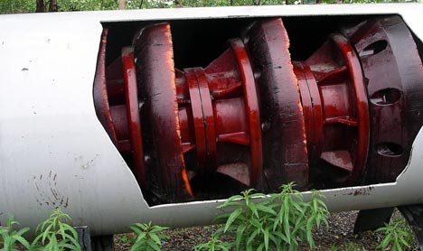 Example pig used in the Alaskan pipeline – see the wipers and note the central compartment within the pig.