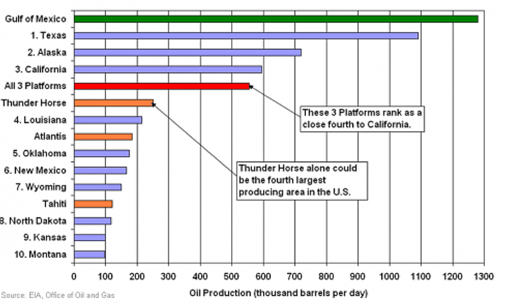Production from the Gulf Of Mexico comparing some individual platform production. (Petro Views)