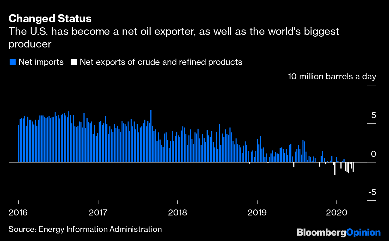 But 2020 is not 1999. The U.S. is now the world’s biggest crude producer, pumping 13 million barrels a day — more even than Saudi Arabia can supply if it opens its taps fully. And so far this year it has exported more oil than it has imported.
