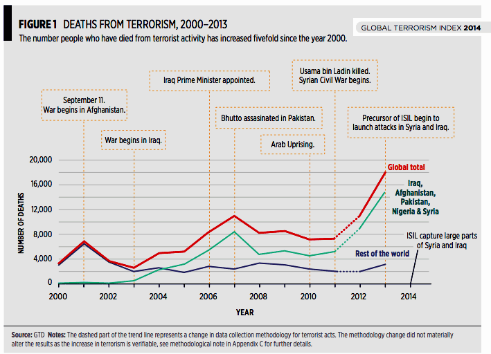 | Mass deaths from terrorist attacks are now doubling every 2 years |