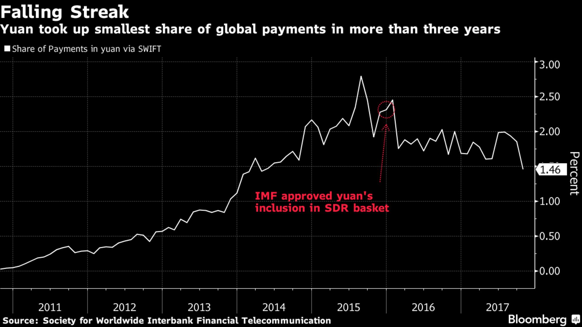 Big Chinese participation in Aramco’s planned initial public offering could help sway Saudi opinion toward accepting yuan, which is used in less than 1.5 percent of global payments measured by Swift. Yet the experience of Russia shows that even when leadership goals are aligned, yuan use can be slow to take off — read about that here.
