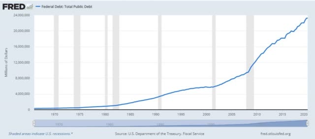 U.S. Department of the Treasury. Fiscal Service, Federal Debt: Total Public Debt [GFDEBTN], retrieved from FRED, Federal Reserve Bank of St. Louis; https://fred.stlouisfed.org/series/GFDEBTN, June 26, 2020.