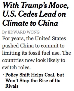 China has staked its future now on preservation of nature. While POTUS erects his 2000-mile long, 100-foot-tall concrete barrier on the Mexican border, Xi is planting the 2800-mile long Three-North Shelterbelt or “Green Great Wall,” to halt and re-vegetate the Gobi Desert.